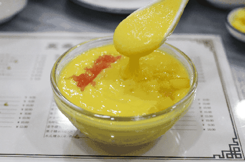 南瓜椰汁西米露是顺德师傅的创新。一碗里能品尝到炖得软烂的南瓜纤维,还能有椰汁的香甜,西米的顺滑口感,层次感十足!