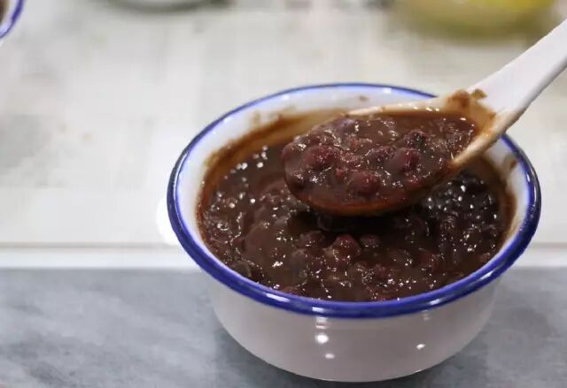 用料十足的红豆沙,看这一勺红豆就知道了。除了颗粒饱满的红豆之外,还添加了陈皮。陈皮提味是超地道的广式做法,为红豆沙增添一份独特香味!