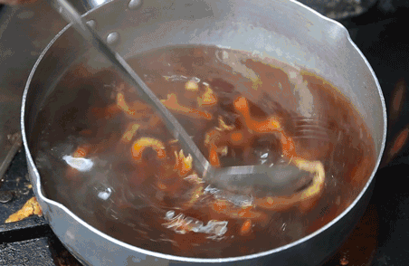 用数十斤老鸡、干贝、火腿等食材经过一夜炖煮熬成的高汤