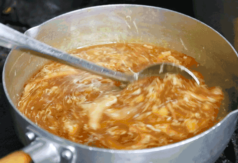 用汤汁来拌饭也是一种很好的吃法,白花花的米饭加上粘稠浓郁的汤汁秒变金黄色。满满的佐料怎一个爽字了得!