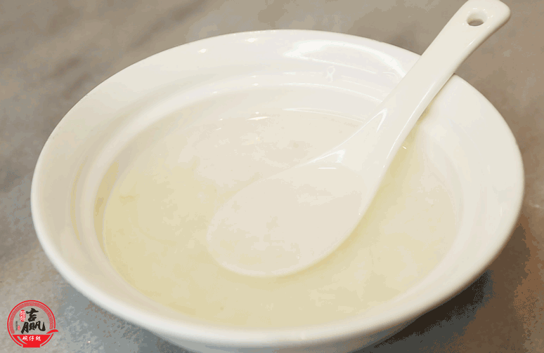 把浓浓的椰汁浇入碗中,椰汁如仙女散花般散开来,燕窝瞬间由透明变得雪白。