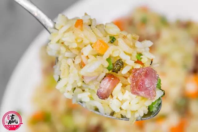金黄的蛋花和各种配料混为一体,每一粒米饭都是精华所在,咸香可口,看得见的奢华。