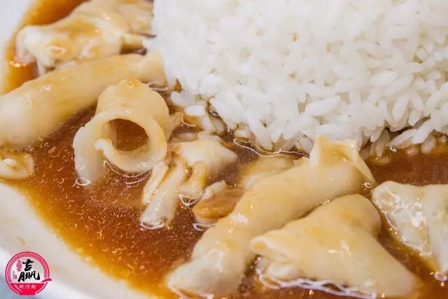 不得不提的是它的鲍汁,经鲍鱼和花胶的熬制收汁后浓稠香甜,在鲍汁的浸泡下白米饭发出金黄的光泽,是这鲍汁我就能吃两碗饭!