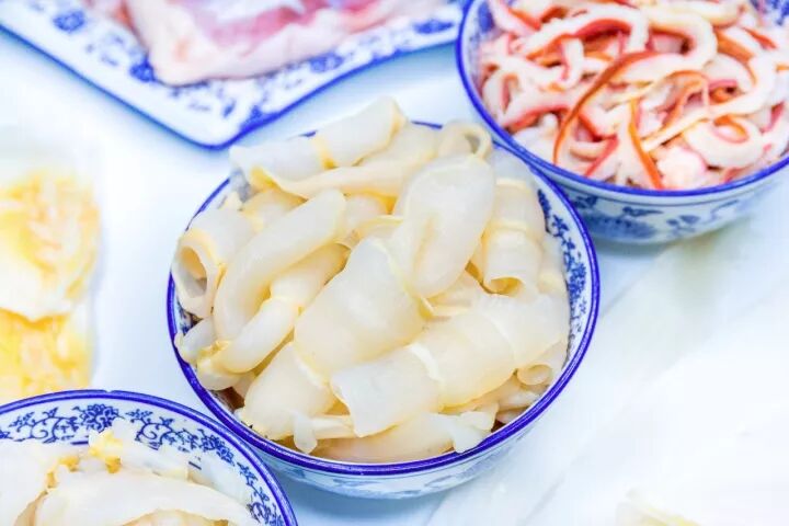 鱼翅、蟹、鲍鱼、海参、竹笙、响螺片、 花胶、猪蹄跟、北极贝边