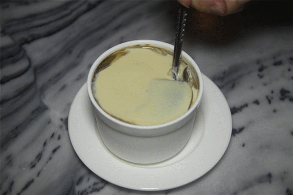 入口时,带有淡淡的甘凉,加入龟苓膏的绝配——炼奶,吃下去觉得口腔、苦只是前调,后调的甘甜在吞入后慢慢泛出,喉咙瞬间被滋润了,感觉爽爆了!掌柜也根据不同人的喜好,还备配了蜂蜜,糖浆任您选择!