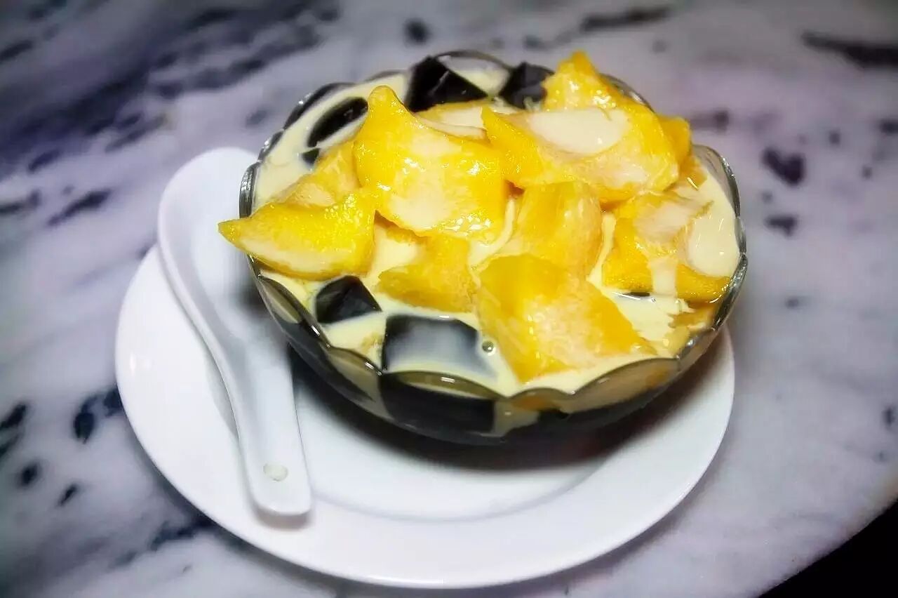 色泽金黄的新鲜芒果与嫩滑爽口、清热解毒的凉粉搭配在一起真是堪称完美!口感层次变得格外丰富,味道更加锦上添花。每一口吃下去,总能带给你甜蜜的感觉。