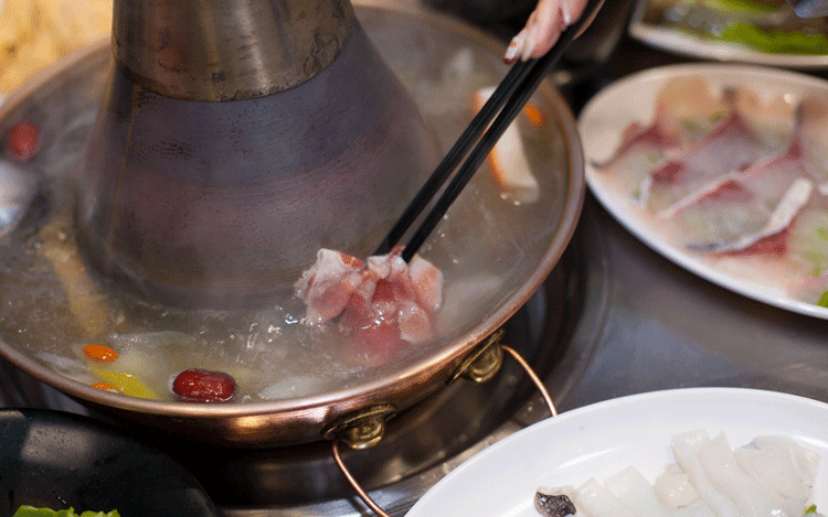 清汤锅底沸腾时的热气