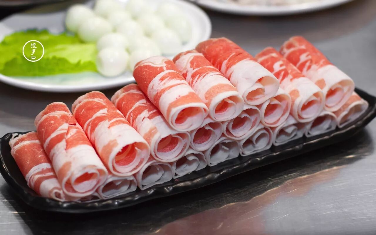 薄切的羊肉片,打着卷儿,一涮即熟