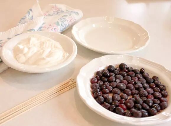 2.裹一层冻酸奶(可以在冰箱里冻一会,更可口哦~)