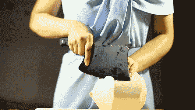 露出里面坚硬的壳,再用靠近刀柄的尖端,