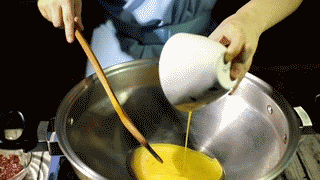 倒入鸡蛋迅速划散,