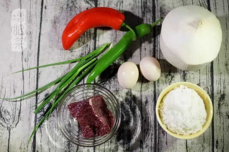 牛肉200克、红椒1个、青椒1个