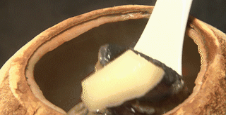 开盖的瞬间,椰香四溢,内壁的椰肉和盅内的乌鸡都炖的十分软烂可口,热乎乎的喝上一口,那滋味实在是妙不可言。