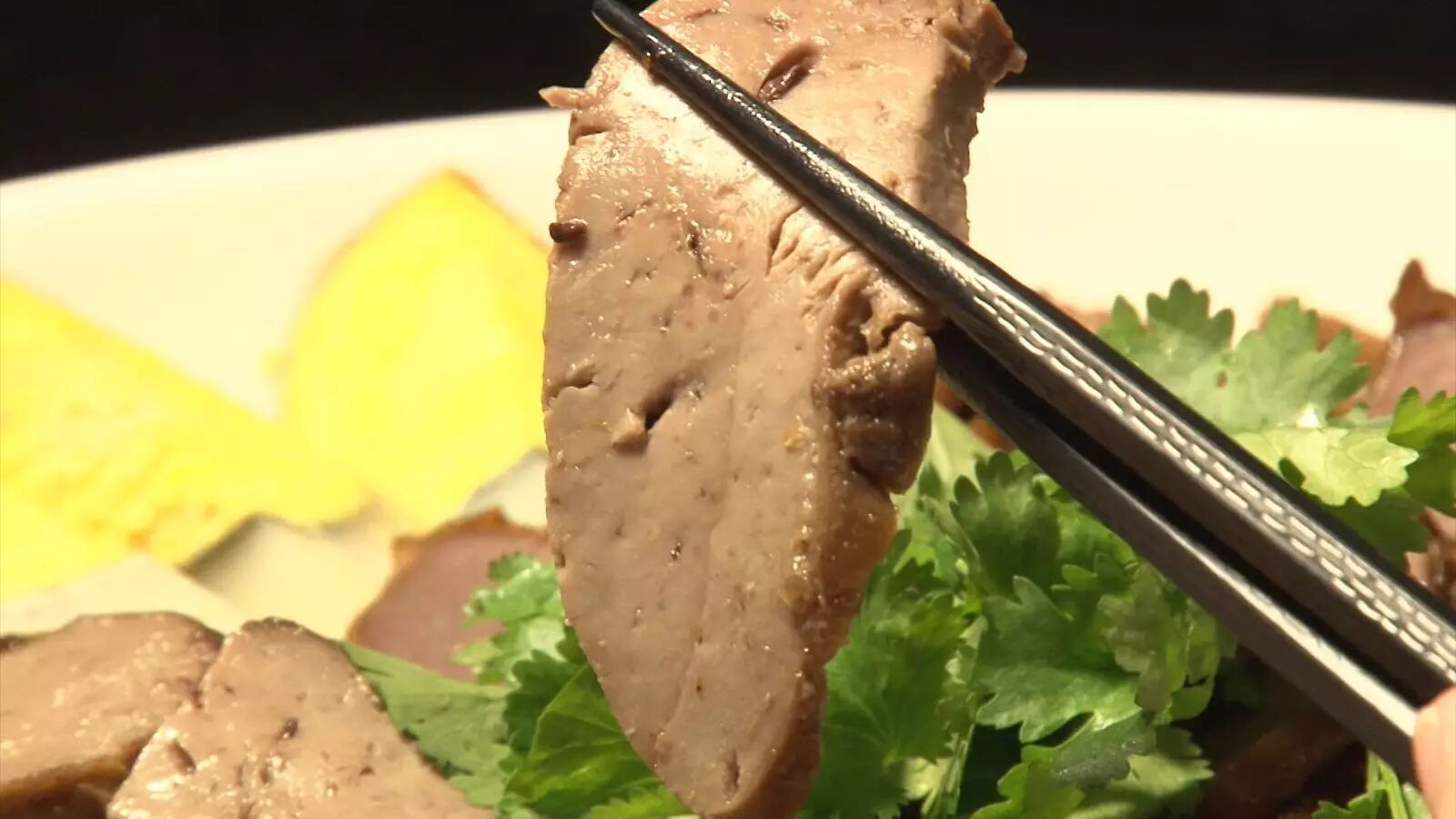 卤好的鹅肝完全入味,卤水本身的咸香味已经渗透到鹅肝里,入口后,浓郁的卤香和肝香瞬间席卷整个口腔。