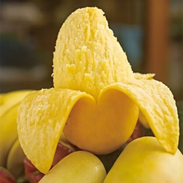 海南小台农芒果型呈长滚圆,外形小巧喜人,果色鹅黄悦目,果肉肥厚,多汁鲜美,兼有桃、杏、李、苹果等滋味。