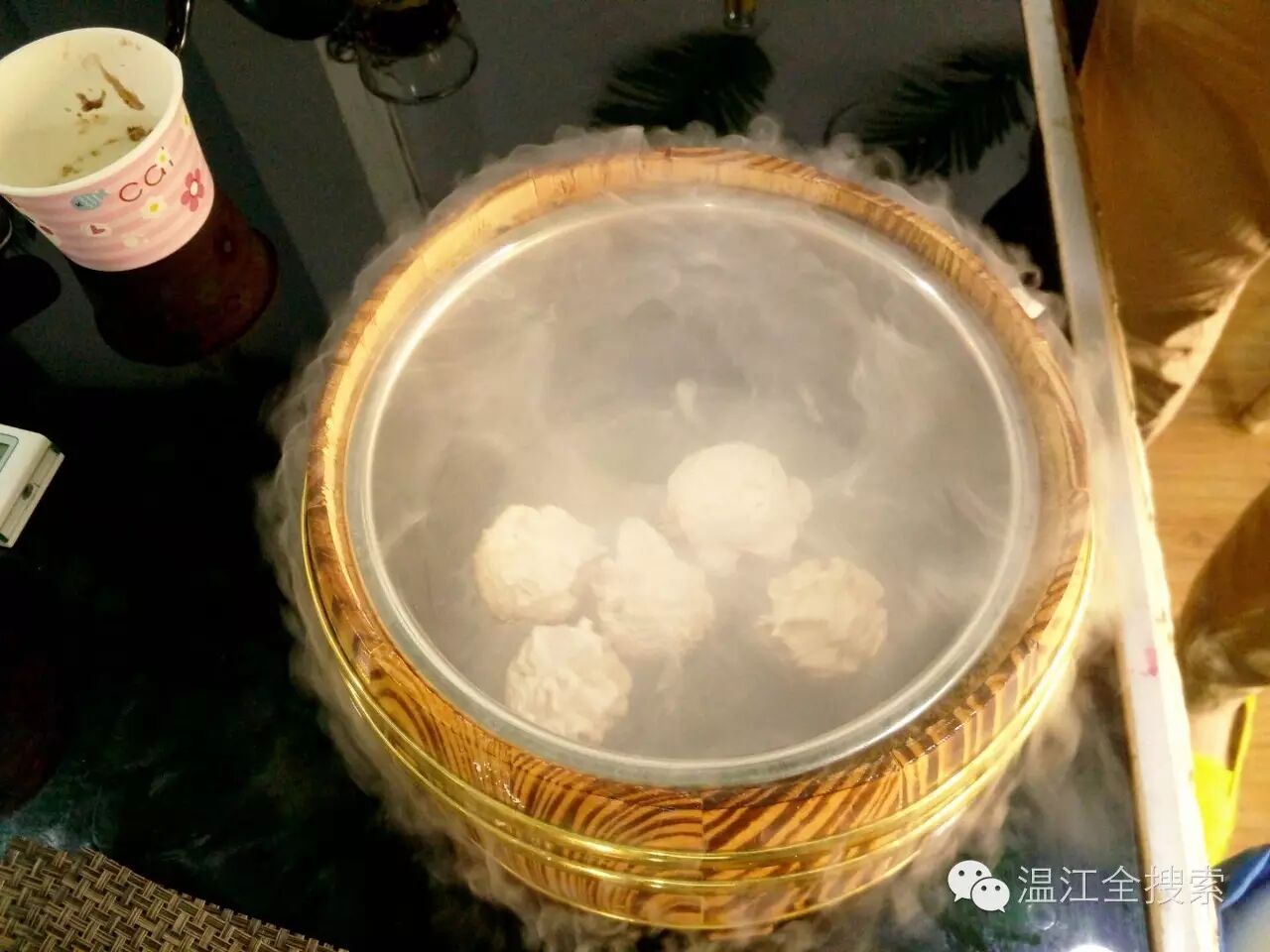 老板还现场表演了冰淇淋制作,将液氮倒入容器中,放入原料,由于液氮温度极低,能达到零下200多度,瞬间就能将冰淇淋制作好。