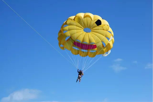 降落伞是常见的一种休闲娱乐项目