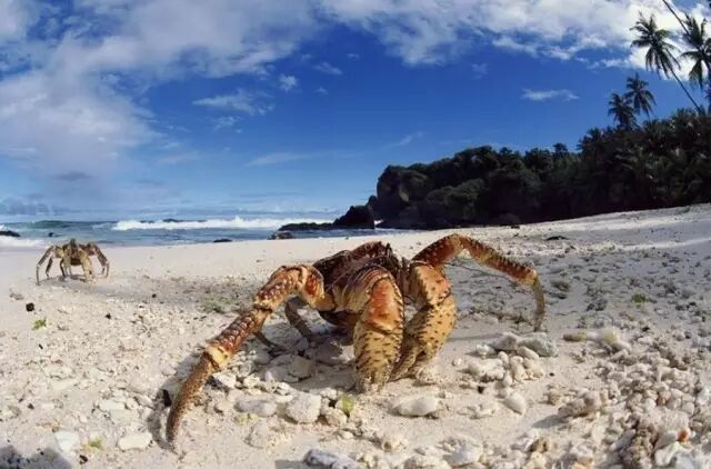 两只椰子蟹,这种生物是陆地上现存最大的节肢动物