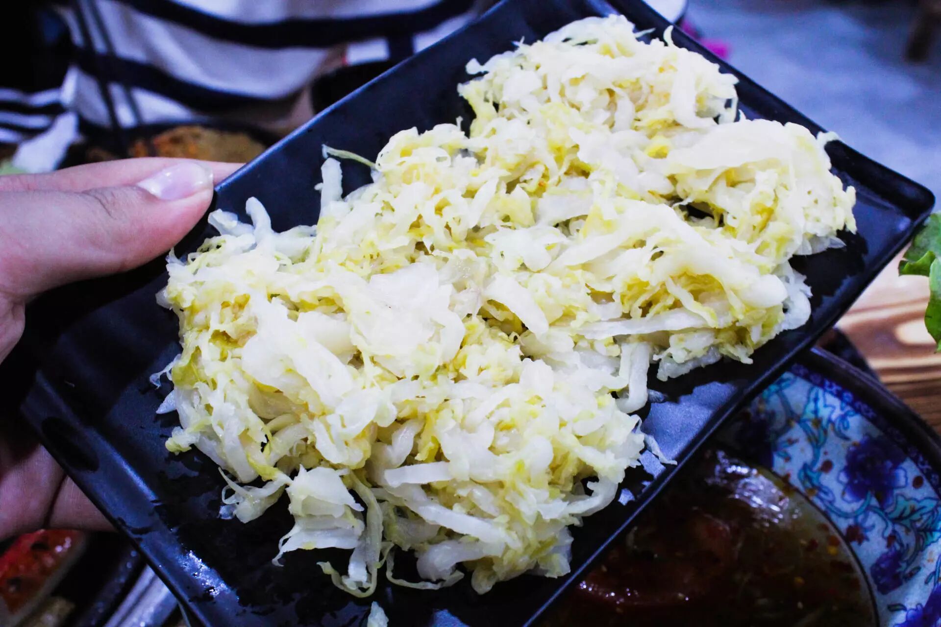 打眼就看到了东北酸菜,怎么说也要尝尝看,不同于四川酸菜的酸,也不同于韩式泡菜的重口味,这里的酸菜酸的恰到好处,烤熟之后配上肉一起吃,一样很解腻。