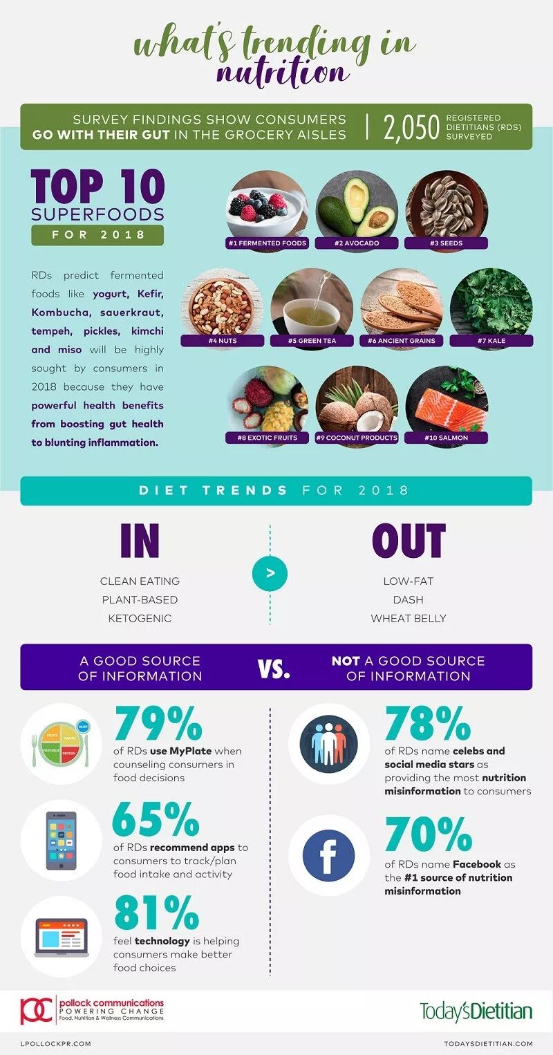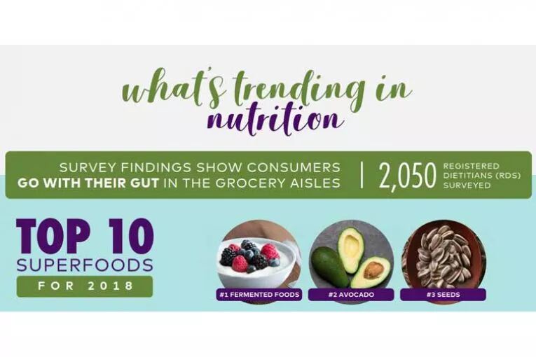 近日,美国波洛克通讯社 ( Pollock Communications ) 和营养杂志《今日营养学家》( Today's Dietitian ) 共同发布了 2018 年的《营养趋势报告》。这份报告,由超过 2000 名注册营养师共同研究得出。营养师们通过分析消费者的饮食喜好变化,预测出了 2018 年的营养趋势。