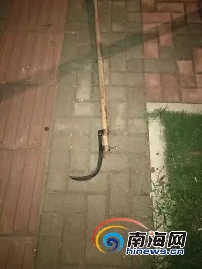据海口市交警支队美兰大队海甸中队协警林东介绍,当晚22时22分许,他与民警王庆民两人正在五西路巡逻,接到警情称有三名女子在五西路与海彤路交叉口偷摘椰子。二人迅速赶至现场,并控制了其中一名女子,现场缴获一把镰刀及一个椰子。随后,该女子被警方带至辖区派出所。