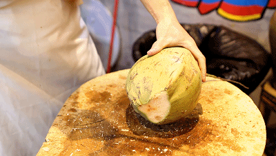 Duang!Duang!Duang!进门就会看到师傅在卖力砍椰青,这是椰妹最大的特点之一。