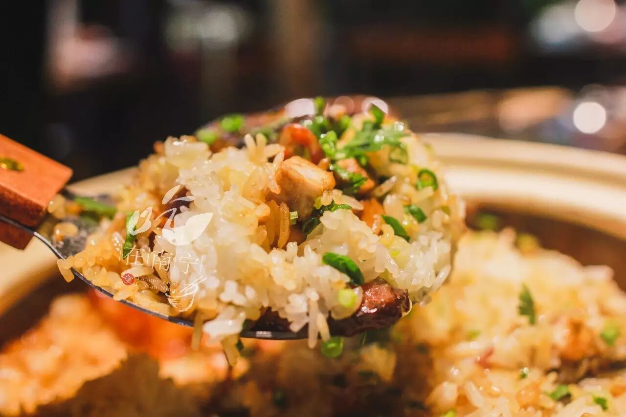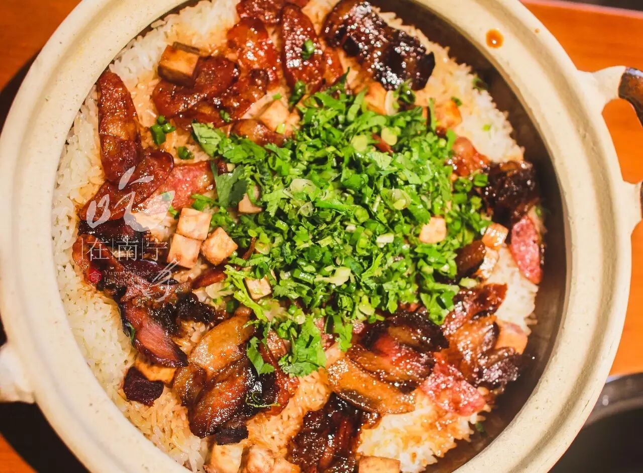 腊味煲仔饭做主食,椰子冻饭后甜点。太安逸~