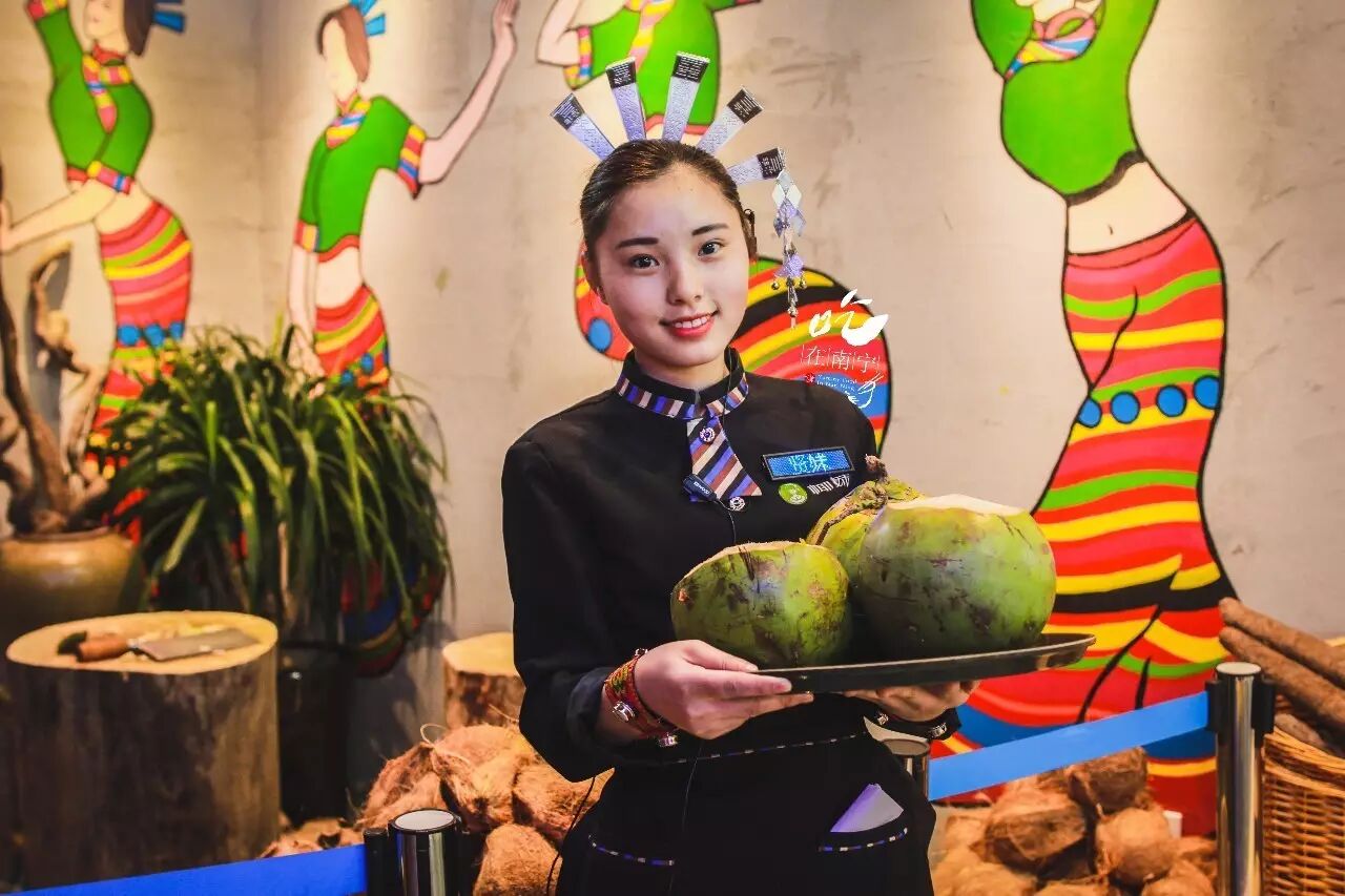 光有精心打磨的菜品还不够,老板恨不得把整个海南都搬来!用上当地少数民族迎接贵客的礼节,环境氛围也做到极致。