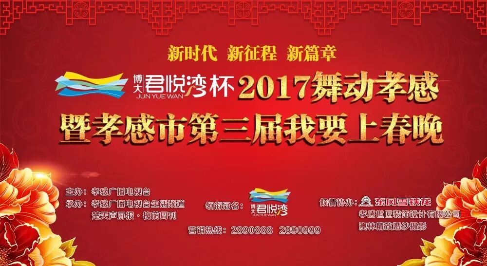 打造百姓舞台,实现春晚梦想。由博大君悦湾领衔冠名的2017舞动孝感暨孝感市第三届“我要上春晚”海选开始啦!