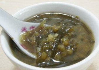 材料:绿豆 200g、海带 25g、香草(也叫臭草)2g/陈皮(晒干的桔子皮)1小块、冰糖适量、水适量