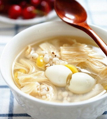 夏天与甜品更配哦!送上广东糖水做法大全,快收藏! 2023-04-19 23:50:29 提示:点击上方"江门日报台山微事"↑免费订阅番薯糖水木瓜银耳糖水木瓜银耳糖水材料:木瓜半只(约200克),银耳三大朵(约20克),冰糖适量(约50克)做法:1. 将银耳用温水浸透泡发,洗净撕成小朵,木瓜削皮去籽,切成小块;2. 银耳、木瓜和冰糖一起放入锅里,加适量水煮开,然后转小火炖煮30分钟-1个小时,即可食用。小提示:1. 喜欢枸杞子或者莲子的人,也可以根据自己的喜好加入,将取十几颗枸杞子或者莲子洗净后与木瓜银耳一起放入锅中炖煮即可;2. 小火煮的时间要取决于银耳熟烂的程度,如果有些银耳不太好煮烂,则需要适当延长一些煮的时间。海带绿豆糖水海带绿豆糖水材料:绿豆 200g、海带 25g、香草(也叫臭草)2g/陈皮(晒干的桔子皮)1小块、冰糖适量、水适量做法:1. 绿豆:懒的话洗干净浸半小时,放在一边待用,如果想口感好的话,去掉绿豆壳。2. 香草/陈皮:如果是放陈皮的话,就要用水浸软,刮去瓢,再洗干净,香草的话洗干净就可以了。喜欢味道浓一点的就切碎,不太喜欢吃的就切大片一点,不过不要不放,不放就没有风味了。3. 海带:浸软,切成小段,喜欢吃起来有口感的就切宽一点,喜欢细腻一点的就切细一点。4. 在处理材料的同时,煲开一锅水,把绿豆、香草/陈皮、海带倒入锅里,中火煲2个小时左右,在煲的时候记得要加水,不然很容易糊,又或者会把糖水煲成糖浆。5. 当绿豆都煲烂了,就跟据自己的口味加冰糖,再煲15分钟。这样好好喝的绿豆沙就煲好了。注意:1. 绿豆能解渴利尿,消肿下气,解暑除烦热,有益于肠胃。因为绿豆性属寒凉,脾胃虚寒,大便稀烂,肾气不足,腰痛,肢冷者都不宜多吃。2. 海带功能和紫菜差不多。但海带不要浸洗太久,因为浸洗太久,它的碘甘露醇(有消肿利尿功能)会被溶去。功能:清凉解热,解毒利尿,治咳嗽,可减少皮肤病毒(例如青春豆)。鸡蛋腐竹糖水腐竹白果薏米糖水腐竹白果薏米糖水材料:干腐竹75克、白果75克、薏米38克、鸡蛋2只、冰糖150克、水8杯或适量做法:1. 薏米洗干净,隔干水,放在一边备用;2. 腐竹浸软,白果去壳,然后用热水浸片刻,撕去衣,去心;3. 鸡蛋煮熟去壳;4. 煲滚水,将白果、薏米放入煲半小时,然后加入腐竹、冰糖,煲至冰糖溶化,将熟鸡蛋去壳并放入糖水中, 煮至薏米刚熟即成。功效:白果和薏米都有清热去湿的功效,天气燥热或胸中烦闷时,煲些白果薏米糖水吃,能清除燥热,使身体舒畅。莲子百合红豆沙莲子百合红豆沙材料:红豆500G、白莲子30G、百合10G 、陈皮适量、冰糖约500G做法:1. 先洗干净红豆、莲子、百合,清水泡浸两小时;2. 煮开水,把红豆(和浸豆水)还有陈皮、莲子、百合放入锅中;3. 煮开后用中慢火煲两小时,最后才用大火煲大概半小时;4. 煲至红豆起沙和还有适量水份,就可以加糖调味,甜度根据各人所爱。注意:1. 红豆不必浸太久,最多是一到两个小时,没时间的可以不浸,也不要用热水浸。2. 陈皮不要用太多,但要用好的。3. 中途可以加水,但豆和水的比例就要看个人喜好了,当然红豆沙不能煮出来太少豆,红豆汤就可以稀一点。4. 冰糖要在最后才下,不然红豆就会煮不烂了。5. 最后转用大火煲是为了红豆能煲散成沙。功效:1. 莲子乃著名滋养药食物,养神安宁,降血压。2. 百合能补中益气,温肺止咳;鲜品有镇咳、止慢性支气管炎、疗肺病止咯血。莲子百合银耳汤水果西米露水果西米露原料:西米、牛奶(或者椰奶)、水果(草莓、西瓜、苹果或者你喜欢的水果)。操作:1. 把西米放进清水里洗干净,然后把一锅水煮沸,把西米放进煮沸的水里。(注意:要一边煮一边用勺子搅拌,否则西米会粘锅底)2. 煮到西米半透明,然后把西米和热水隔开,再煮一锅沸水,把刚才煮到半透明隔好水的西米再放到沸水里煮。一直煮到全部透明,把沸水都倒去。3. 煮一小锅牛奶,放少许糖。(建议:用椰汁代替牛奶,椰汁会更加香,若不喜欢椰汁,牛奶也可以。)4. 把牛奶倒进西米里一起煮,不用煮太久。把煮好的西米牛奶放进冰箱,直到冰冻。西米好了后,过冷水,这样会Q的。5. 最后将你喜欢的水果切丁,放进冰冻的西米露里即可。喝着自己做的饮品,心情一定不错!水果不能放进去煮哦~~~会酸的哦~~芝麻糊芝麻糊材料(4~6人分量):黑芝麻200克、白米1汤匙、冰糖适量、清水8碗。滋润小百科:要煮出芝麻糊带糊状的质感,必须要落米浆;而想芝麻糊香一点,就应再放少许白芝麻一齐煮。做法:1. 将黑芝麻和米洗净,浸2小时。2. 将黑芝麻、米及4碗水放入搅拌机内,搅5分钟,将芝麻及米搅至全烂。3. 将芝麻米浆倒在鱼袋布内,隔渣,令芝麻糊更滑。(如用茶隔,需隔2小时以上)4. 把4碗水及冰糖放入煲内,煮溶,再放芝麻米浆,慢火一边煮,一边搅动,煮至糊状即成。营养价值:1.黑芝麻糊的效用更胜鲜奶,食得多皮肤会滑溜、少皱纹,还会令肤色红润白净。更可以治便秘。2.利用节食来减肥的人,由于其营养的摄取量不够,皮肤会变得干燥、粗糙。而芝麻中含有防止人体发胖的物质蛋黄素、胆碱、肌糖,因此芝麻吃多了也不会发胖。3.在节食减肥的同时,若配合芝麻的食用,粗糙的皮肤可获得改善。冰糖燕窝冰糖燕窝材料:燕窝15克、粉光参10克、冰糖少许。做法:1. 燕窝先泡水去掉杂质。2. 水煮滚后将所有药材加入炖煮。3. 煮滚后加入冰糖,所有的材料皆可食用。4. 如果喜欢吃甜一点的人,可以加几颗红枣调味。因为燕窝是