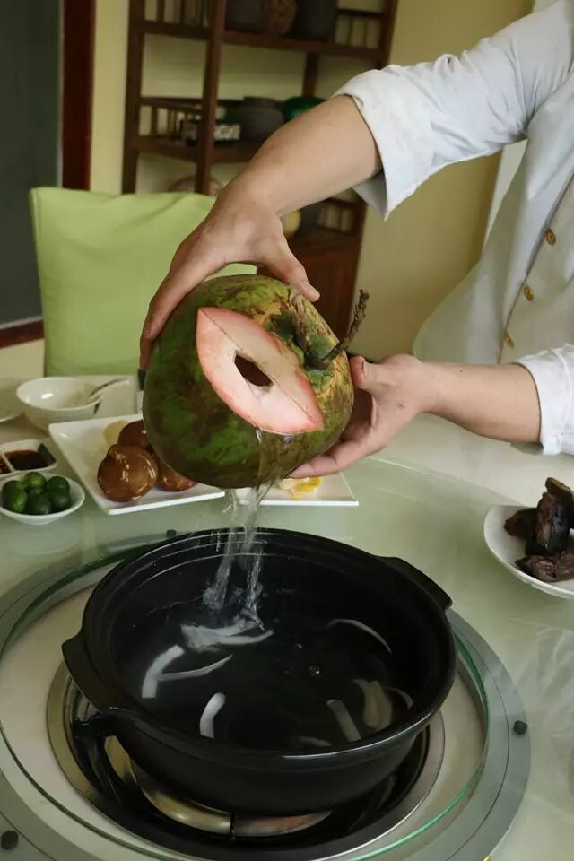 先喝一口椰子水煮的底汤,清香甘甜,顿时令人神清气爽,