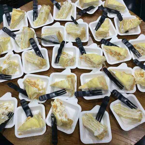 我们的小伙伴们是不是很美腻、很可耐~朋友说为大家提供了精美的零食、水果、蛋糕,最激动人心的产品当然数我们的千层蛋糕了~
