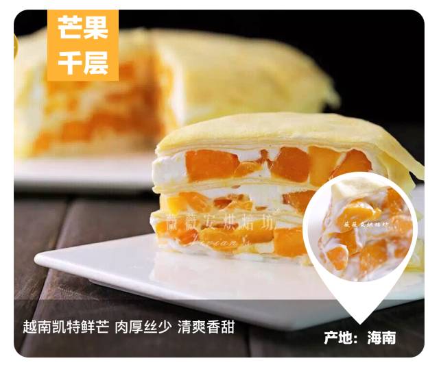 薇薇安坚持选用当季最好最甜的凯特芒果,每天现切现做,搭配上奶油和可丽饼皮,清甜爽口,一层一层,挑战你的味蕾。