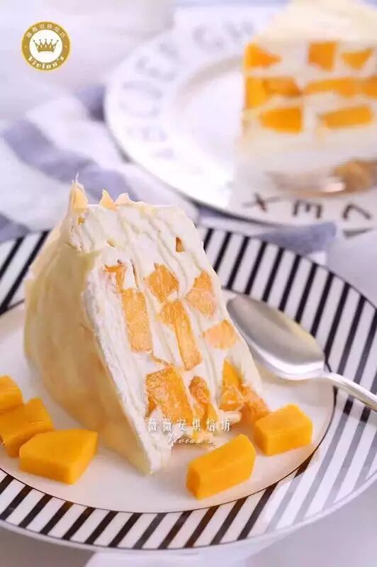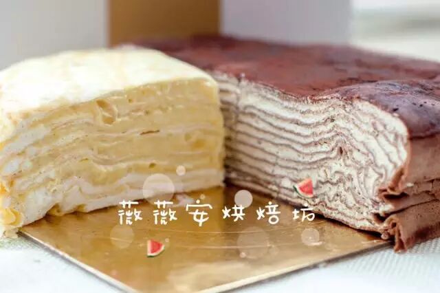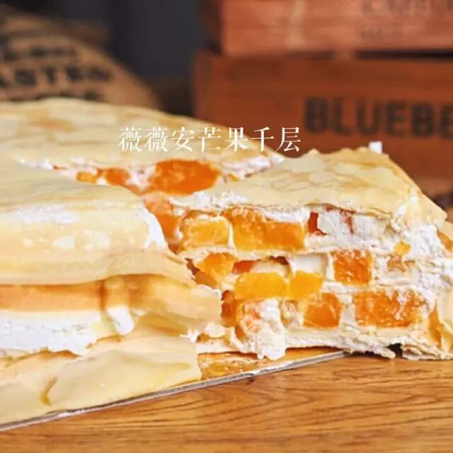 千层蛋糕由多层酥皮夹以芝士组合而成,Mascarponecheese、黄油、低筋粉、高筋粉、鸡蛋混合其中。