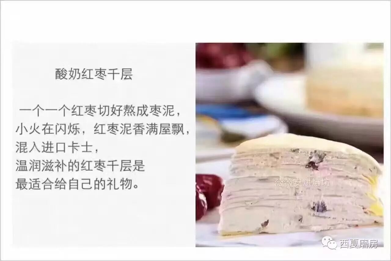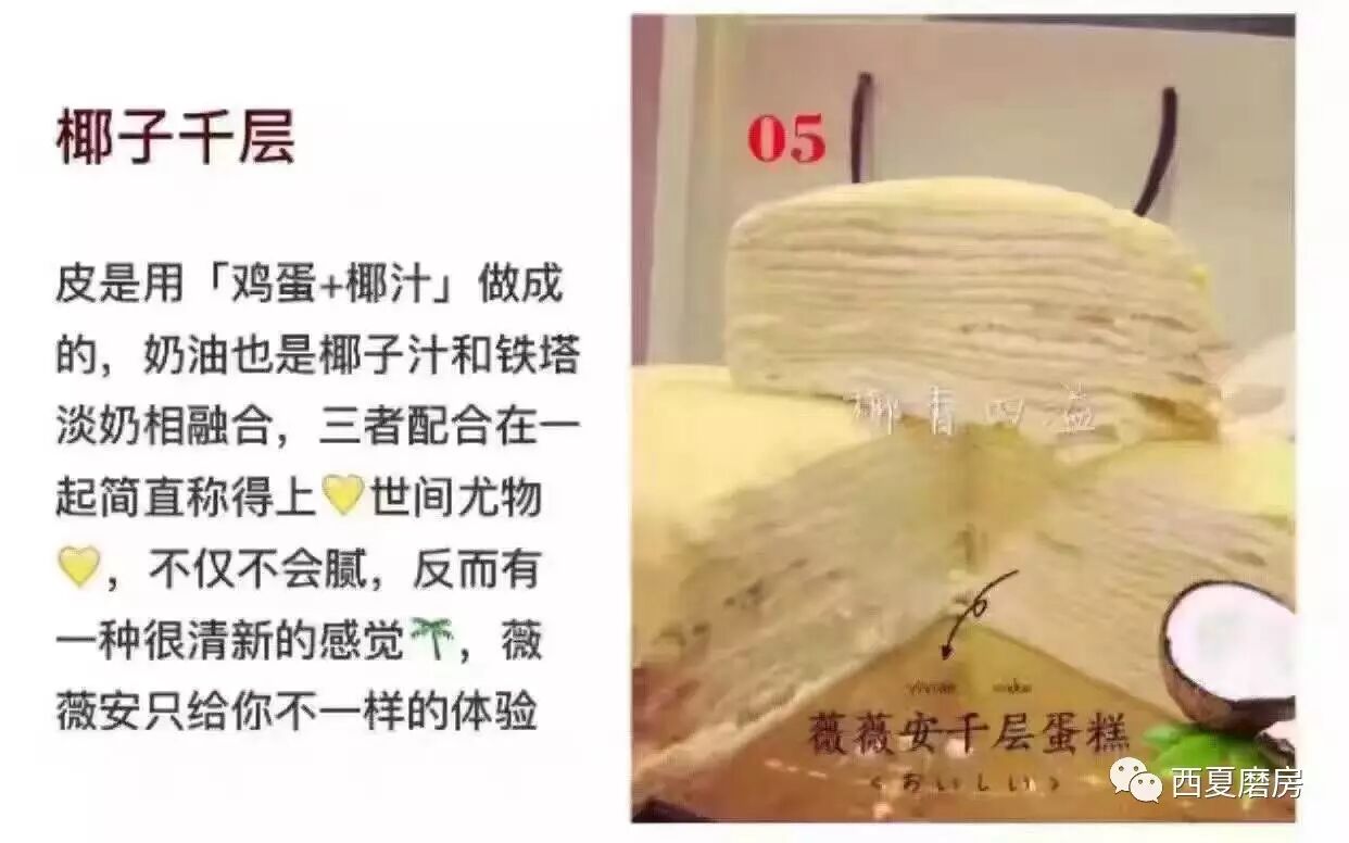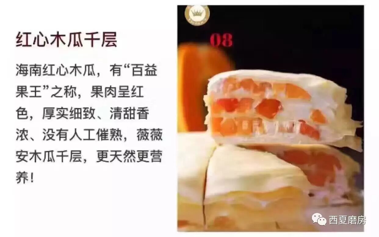 西夏磨房友情赞助商---薇薇安千层蛋糕 2023-04-19 23:50:29 薇薇安千层蛋糕是海南空运过来的,每周1 3 5到货,免费送货上门。口味有榴莲、芒果、提拉抹茶、椰子、红枣、草莓、黄桃、木瓜、菠萝可双拼可四拼需要提前预定西夏磨房驴友:十八哥 18209513994(微信同号)