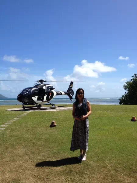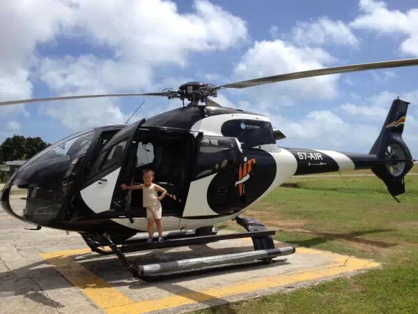 今天的重头戏是乘坐直升机去马埃!单程825欧。我们没有欧元了,付了1155美金。如果你运气好,刚好有人乘直升机从M岛到L岛,你就可以搭个顺风机回去,价格至少便宜一半。但飞行点一般没有工作人员,都是得到飞行通知后才会有地勤人员来上班,所以要想搭到便宜飞机,除了运气好,还要不断给工作人员打电话询问有没有飞机过来。