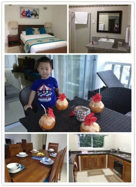 6点,到达Casa Tara Villas,在P岛三晚的住宿地。奔波了12个小时,终于落脚了地方不错,两幢白色的两层楼别墅,一层就是一套住房。挺大的院子,干净而美丽。我们到的时候,男主人正在给草地浇水。宽敞的客厅和两间卧室都带有观景阳台,厨房里厨具一应俱全。女主人细心地给我们准备了原汁原味的冰镇椰子汁。