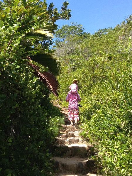 Grand Anse旁边是Petite Anse,需要从花岗岩石上爬山过去。路的陡峭程度超过我们的预想,沿途都能遇见穿着泳装和拖鞋爬山的人,感觉好奇怪儿子居然和爸爸牵着手,自己走完了全程!