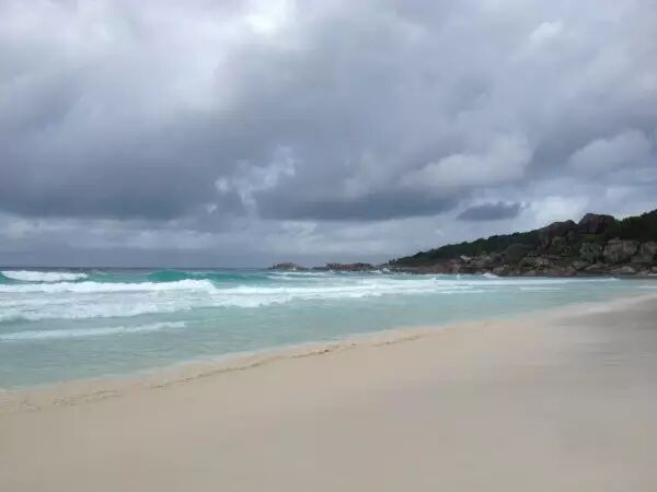 一路问路,终于到了鼎鼎大名的德阿让海滩。我只能说,盛名之下,其实难副。比起其他地方的海,它也算美。但是这里是塞舌尔啊,以无敌海景著称的塞舌尔。德阿让,何德何能,居然敢收费!沙滩面积很小,脏兮兮的,岸边和水下都是死珊瑚和扎脚的岩石,没法游泳。