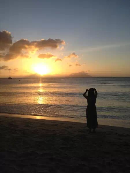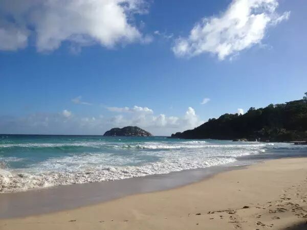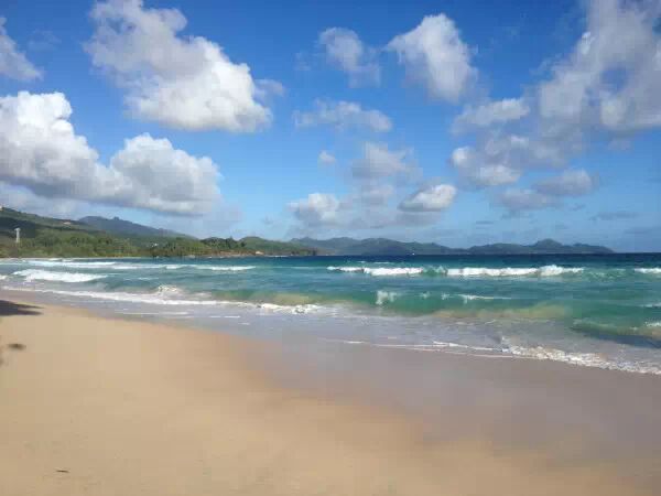 骑行在高低起伏的山路上,仿佛回到了自行车还是主要交通工具的中学时代。只是,岁月不饶人,如今已是孩儿他妈大概骑了三四十分钟,眼前出现一条蜿蜒的林荫小路。如同桃花源般,走过这条小径,面前出现了有着白沙绿浪的浩瀚大海。Welcome to Grand Anse!