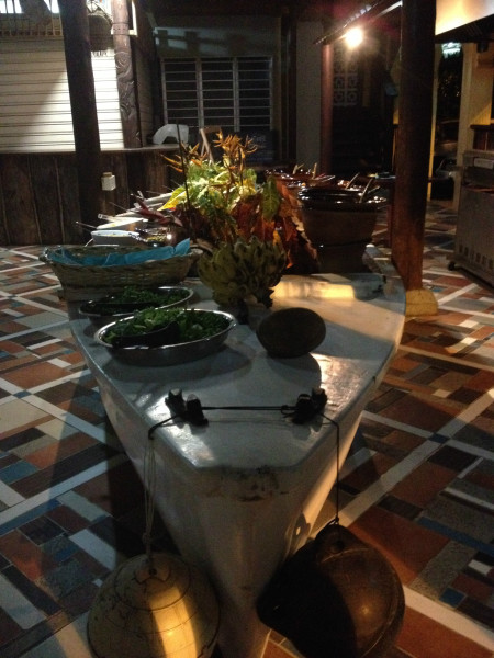 伴着夕阳,回到住处,该吃晚饭了。住民宿的好处是,可以合理地提要求。比如晚餐,就是按我们的要求做的,两种做法的鱼,其中一种混合了面包树的果实。