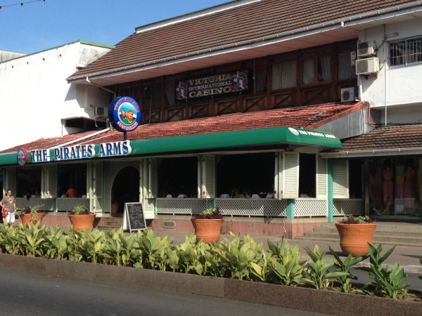 到码头,出示订单,交钱,取票,托运行李。一切停当,3点半。还有点时间,去这个世界上最小的首都逛一圈。后来自驾环岛游时又去了一趟,后面再详述吧。前辈们推荐在离海盗臂餐厅(The Pirates' Arms)大约30米的窗口换钱,我们歪打正着地走进了餐厅旁边的过道,进去两三米,左边也有一个换钱的窗口。后来证明,这一家的汇率更高,而那一家和街对面的Barclays差不多。