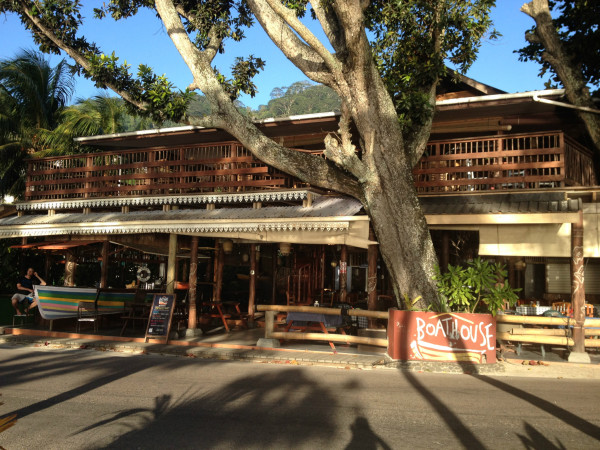 午餐在无数攻略提到过的海盗臂餐厅吃。我觉得味道还可以,不像第一天下飞机时遇到的那个在塞舌尔工作的中国人说的那么不行,只是那杯冰咖啡实在有些难以下咽。三个人,三杯饮料三份饭,600卢比。