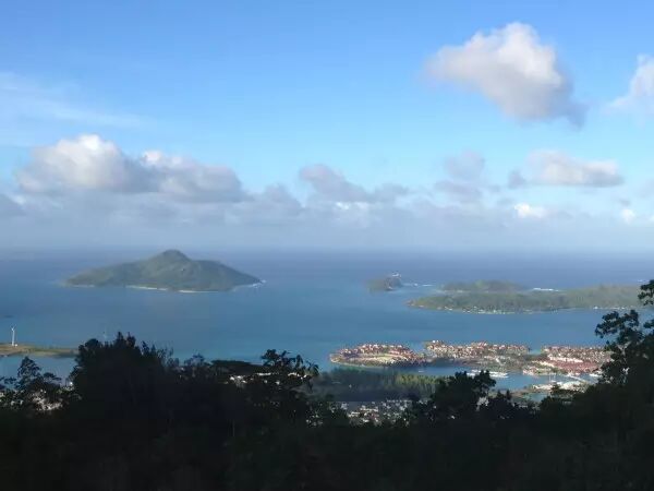 飞机晚了20分钟起飞,但却准点到达了。当地时间中午1点过,我们降落在塞舌尔主岛,也是首都维多利亚所在地,马埃机场,立即被无敌海景震撼了。阳光灿烂,海风阵阵,心情大好。