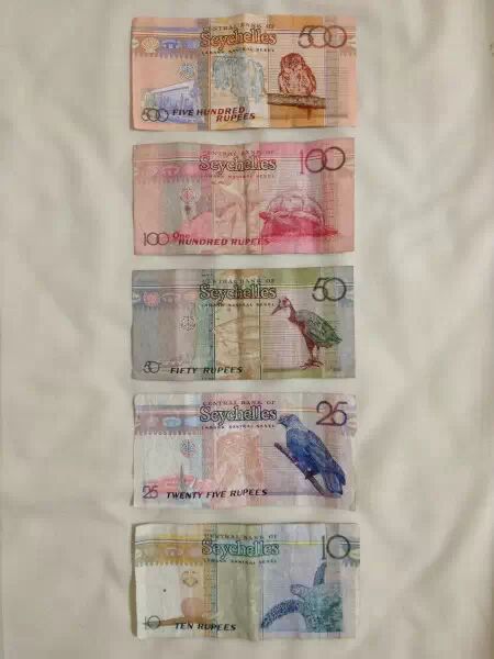 重要提示:1元人民币约等于2塞舌尔卢比。在塞舌尔,卢比、欧元、美金通用。最划算的方式是对方要求你给什么钱,你就给什么钱。如果你要换成另一种钱给,在换算时汇率一定是对你不利的。比如,船票订单上写的是卢比价格,你要给欧元,汇率会远远低于银行牌价。如果酒店订单上写的是欧元价格,你要给卢比,那汇率肯定远远高于银行牌价。所以,一定要通过订单,一开始就明确要给什么钱,对每种钱需要的数量大概有数,不要到时候换来换去,会因为汇差损失不少。一般来说,酒店、租车、跟旅行社的跳岛游付欧元;其他的,比如船票、打车、饭馆、当地购物等,都用卢比。