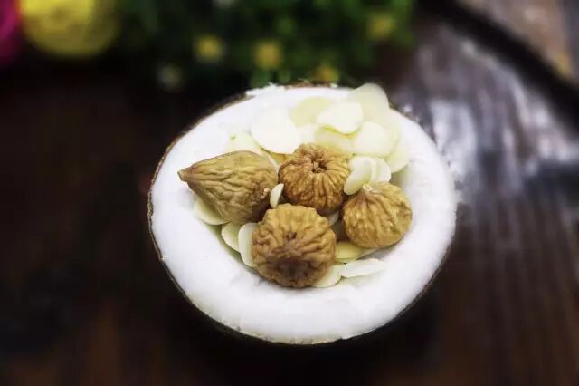 南北杏无花果配老椰炖制(唔好以为系汤啊,系甜品嚟噶)一啖奶、一啖南北杏,温和清甜之余,又有止咳润肺的功效..