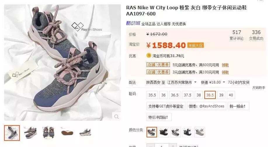 另一个店铺,女码粉红色、38.5尺码 竟然高达1588!!