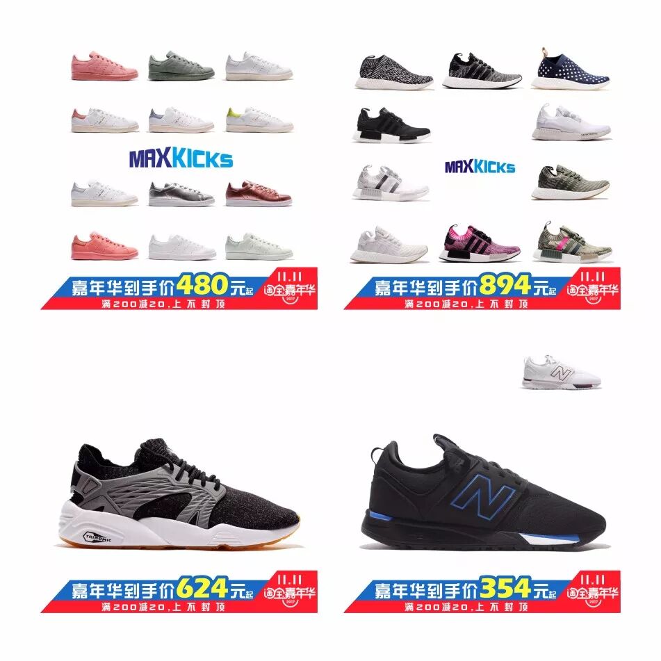 max kicks 引爆双11,惊爆价椰子350,特价鞋款199起.抽奖送iphone x等好礼.