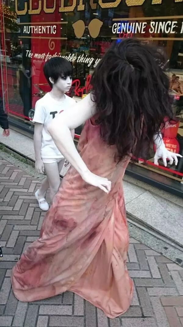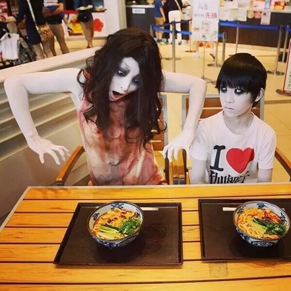 伽椰子母子档摆出咔嚓咔嚓造型,而贞子阿姨——